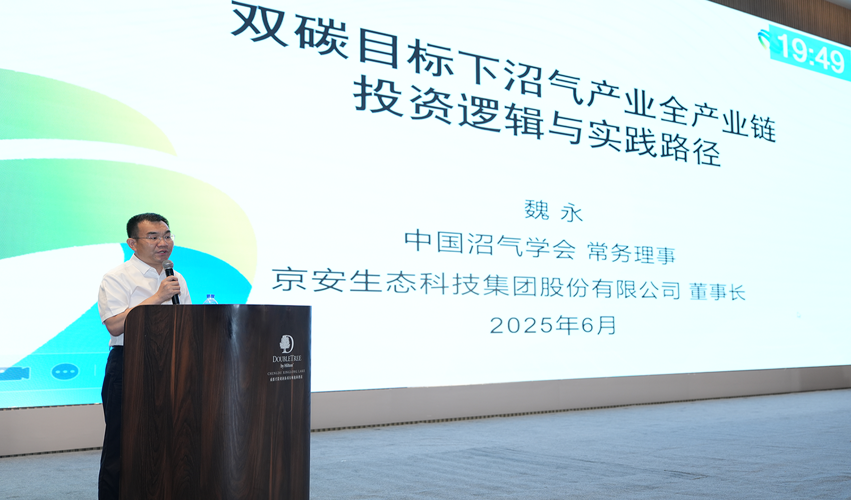 公司董事长魏永带队参加本次论坛,,并作了题为“双碳目标下沼气产业全产业链投资逻辑与实践路径”的主题报告,,,,介绍了沼气项目具有的显著的战略价值和广阔的市场前景,,是“双碳”背景下极具吸引力的投资方向之一。。。。其核心价值在于将环境治理压力转化为资源循环利用和清洁能源生产的动力。。建议行业同人戮力同心,,,,加强对外合作交流,,,,促进生物天然气绿色生态价值的标准核准和国际互联互通,,,为国家提出的双碳目标奋斗。。。